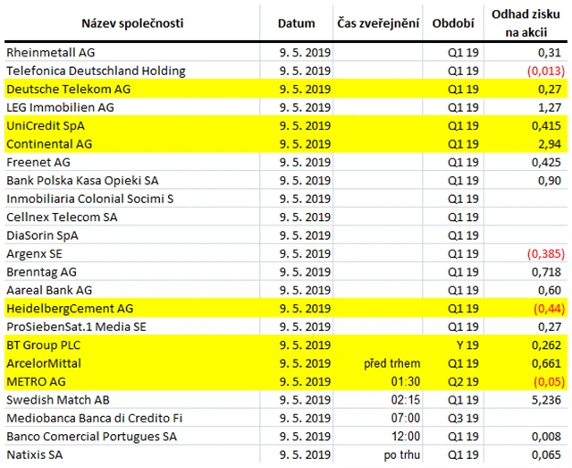 Poznámka: Odhady analytiků jsou aktuální k 3. 5. 2019.