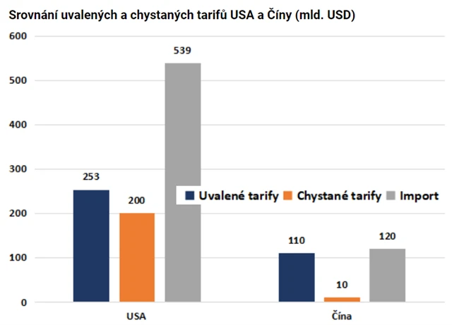 Je ale potřeba podotknout, že USA mají výrazně větší manévrovací prostor pro zavádění cel. Čína může uvalit dodatečné tarify na zboží v objemu okolo 10 miliard USD za rok, USA mají prostor mnohonásobně větší. Je ale sporné, zda jde (vzhledem k povaze konfliktu, osobnosti amerického prezidenta nebo dlouhodobým postojům a taktikám Číny) ve výsledku o výhodu, nebo jen větší riziko.