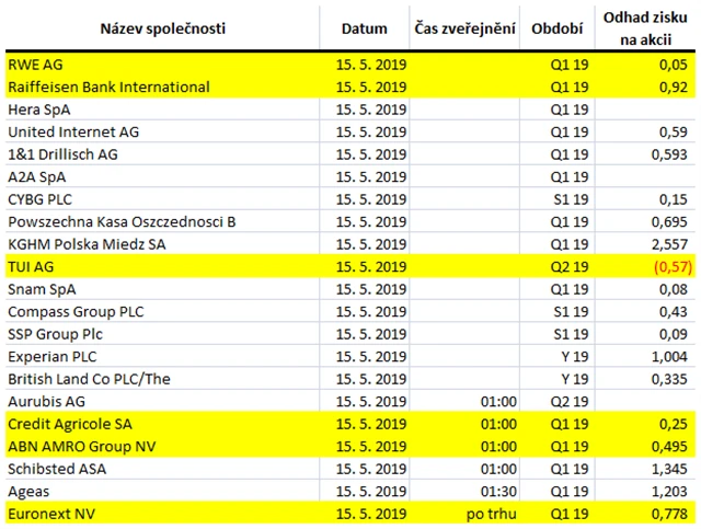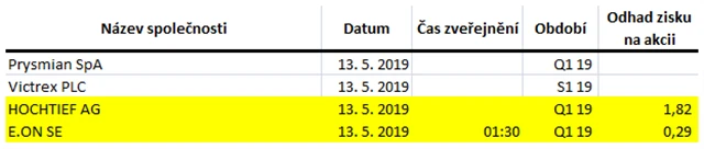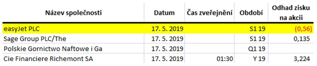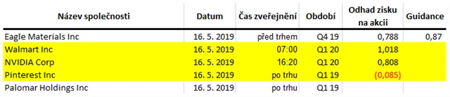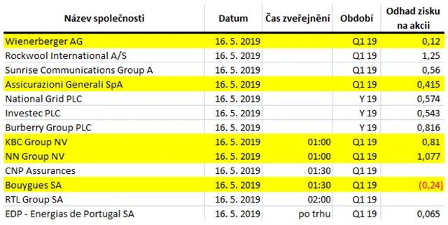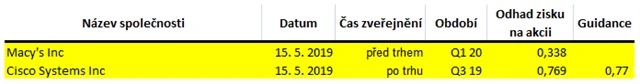 Poznámka: Odhady analytiků jsou aktuální k 9. 5. 2019.