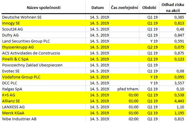 Očekávané výsledky světových firem v týdnu od 13. května