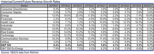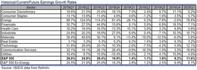 Jak se vyvíjejí odhady růstu či poklesu zisků a tržeb amerických firem za 1Q2019?