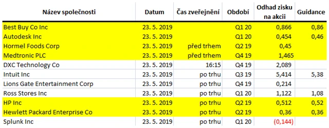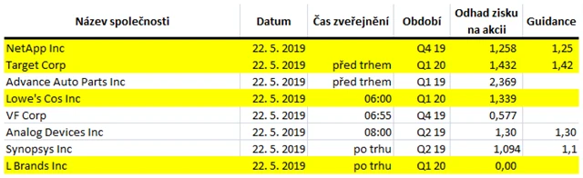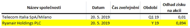 Očekávané výsledky světových firem v týdnu od 20. května (17. 5. 2019)