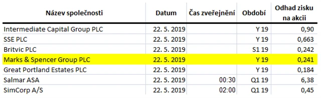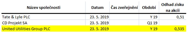 Poznámka: Odhady analytiků jsou aktuální k 16. 5. 2019.