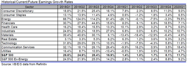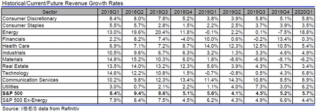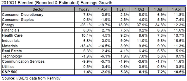 Jak se vyvíjejí odhady růstu či poklesu zisků a tržeb amerických firem za 1Q2019?