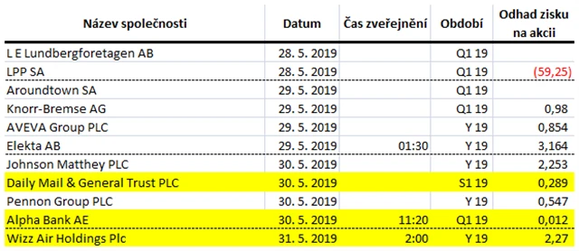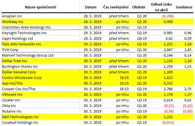Očekávané výsledky světových firem v týdnu od 27. května (24. 5. 2019)