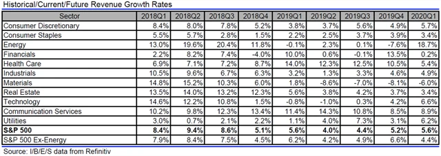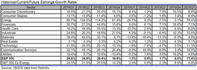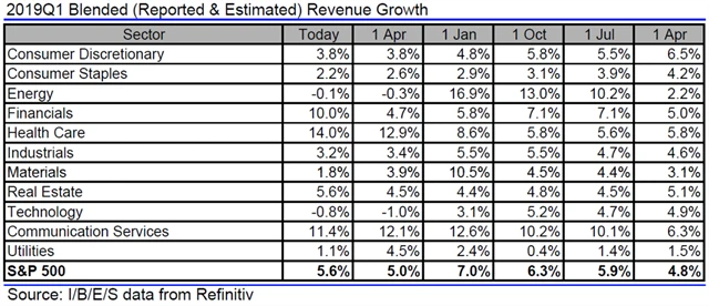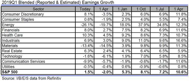 Jak se vyvíjely odhady růstu či poklesu zisků a tržeb amerických firem za 1Q2019?
