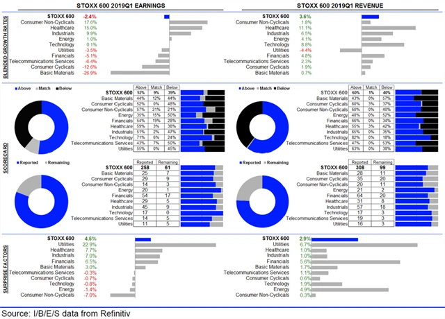 Jaká překvapení přinesly oznámené výsledky evropských firem za 1Q2019?