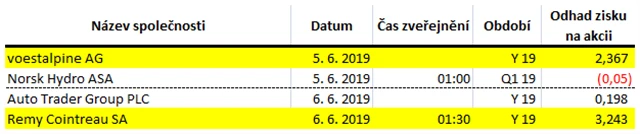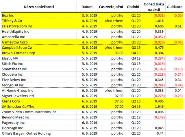 Očekávané výsledky světových firem v týdnu od 3. června (31. 5. 2019)