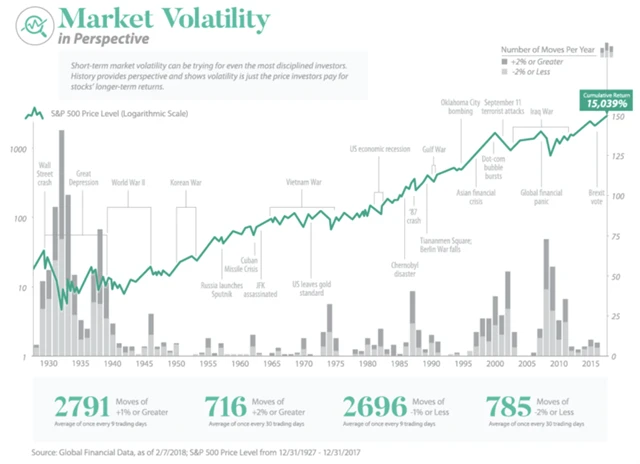 Od roku 1928 do roku 2017 americký akciový index S&P 500 (a jeho zpětně dopočítaný model) předvedl 2 791 denních růstů alespoň o procento, 716 posílení o minimálně dvě procenta, 2 696 poklesů o procento a více a 785 propadů o dvě procenta a více. Z toho lze celkem jasně vyvodit, že dlouhodobý růstový trend na akciovém trhu je tvořen převážně méně výraznými posíleními, kterých je o něco více než drobných poklesů. No a v tom všem se točí biliony dolarů.