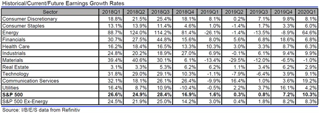 Jak se vyvíjejí odhady růstu či poklesu zisků amerických firem za 2Q2019?