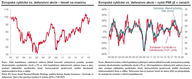 Meziroční relativní výkonnost cyklických akcií oproti těm defenzivním silně korelovala s vývojem indexu nákupních manažerů. Na současných úrovních dokonce evropský akciový trh počítá s PMI zpět na úrovni 55 bodů. Lze tedy říci, že akciový trh již do cen zahrnul potenciální zlepšení kondice ekonomiky, a tak je prostor pro jeho výraznější růst spíše limitovaný.