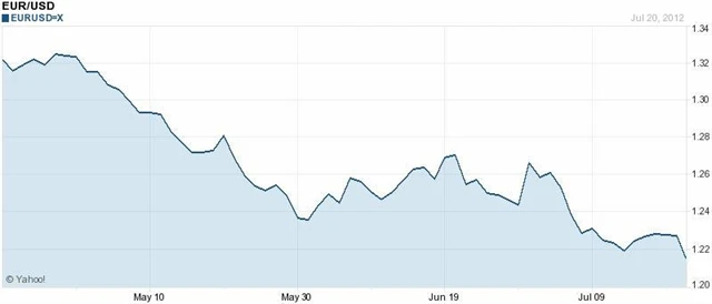 Pro USD budou hrát: Lepší výsledky PMI za červenec, lepší než očekávané HDP za 2. kvartál 2012 (odhad +1,2 %), pokračující a prohlubující se starosti v Evropě (v pátek trhy mávalo především Španělsko a jeho ekonomický výhled, krachující oblast Valencie).