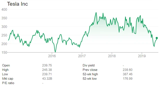 Akcie Tesly v uplynulých týdnech mazaly ztráty z předchozích měsíců. Firma oznámila výrobní rekord (95 200 vozů v 2Q2019), ovšem aby dostála svým závazkům, musí v každém zbývajícím čtvrtletí roku vyrobit 100-120 tisíc aut. Pokud se to Elonu Muskovi nepodaří, přibude na jeho důvěryhodnosti v očích investorů další trhlina.