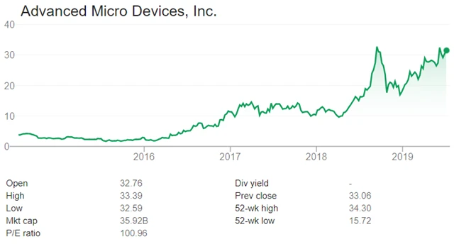 V červenci firma zahájila prodej 7nm GPU Ryzen a 7nm CPU Ryzen 3000, o které je enormní zájem (nejen v USA), většina světových prodejců hlásí vyprodané zásoby. AMD ukrajuje tržní podíl Intelu, který je ve vývoji 7nm čipů pozadu a bude zřejmě nucen snížit ceny produktů, případně zlepšit marketing. Silné prodeje AMD zaznamenává i v případě grafických karet Radeon RX 5700, které jsou výkonnější a úspornější než karty stejné cenové kategorie od společnosti NVIDIA. Akcie AMD jsou tedy nadále zajímavé.