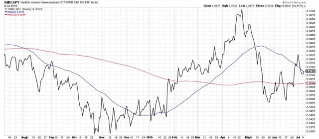 Když akcie výrobců polovodičových součástek rostou, daří se většinou celému trhu. A právě index sektoru polovodičů (SMH) je jedním z těch, které v poslední době vykazují výrazné zlepšení. Na lokální dno spadl koncem loňského roku, poté se na lokální maximum dostal v polovině dubna a nyní je nejvýše od poloviny května.
