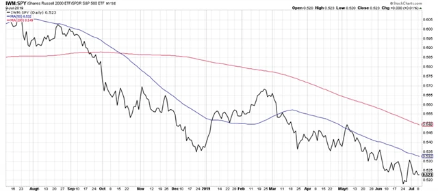 A na závěr poměr výkonnosti akcií společností s malou a velkou tržní kapitalizací. Ceny akcií podniků s malou tržní kapitalizací mají během býčích trendů tendenci vykazovat lepší výkonnost než akcie společností s velkou tržní kapitalizací, v tomto případě tomu tak ovšem není. Tento poměr tak zůstává kaňkou na jinak pozitivním akciovém výhledu.