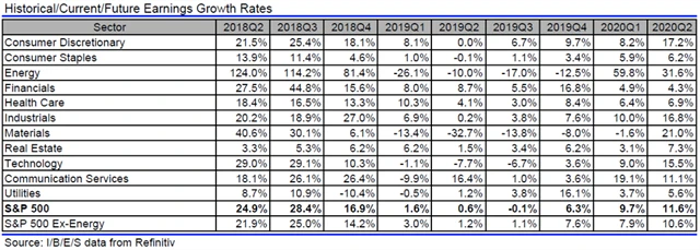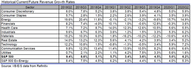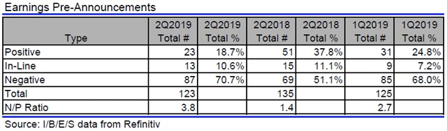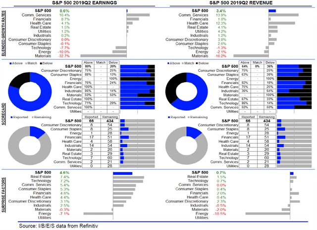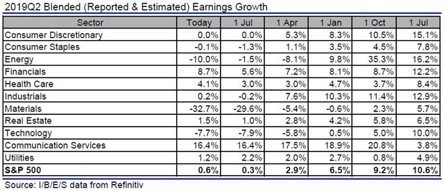 Jak se vyvíjejí odhady růstu či poklesu zisků a tržeb amerických firem za 2Q2019?