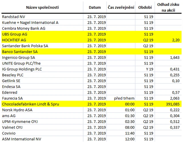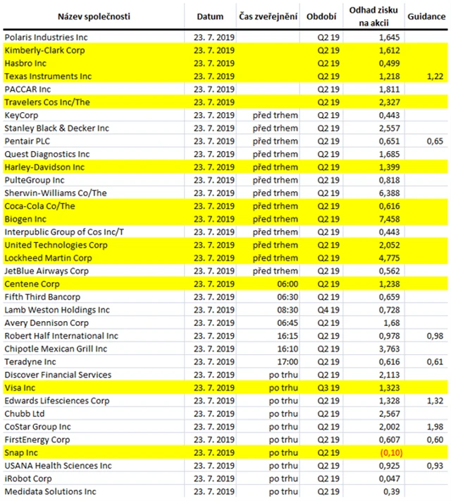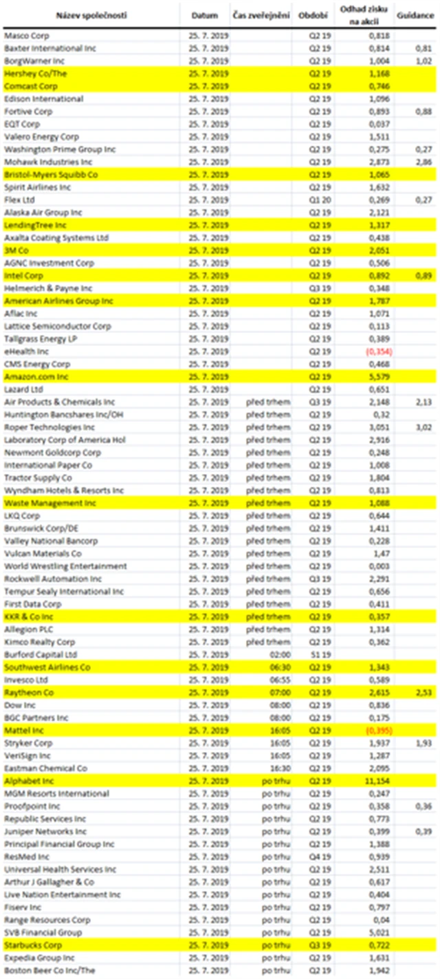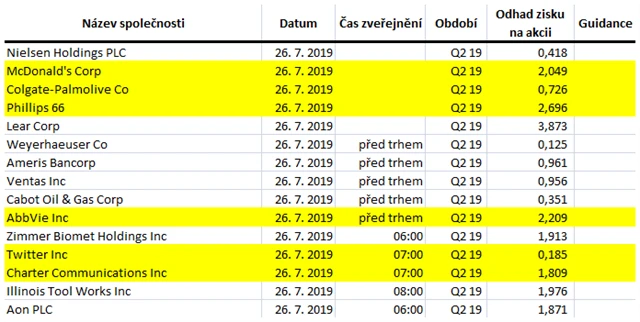 Poznámka: Odhady analytiků jsou aktuální k 18. 7. 2019.
