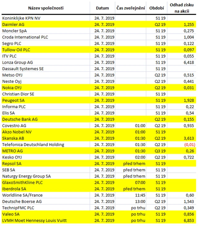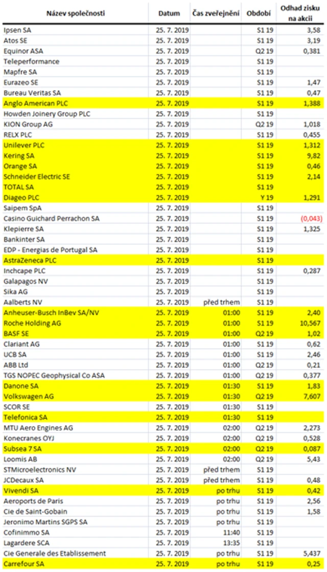 Jaká překvapení přinesly oznámené výsledky evropských firem za 2Q2019?