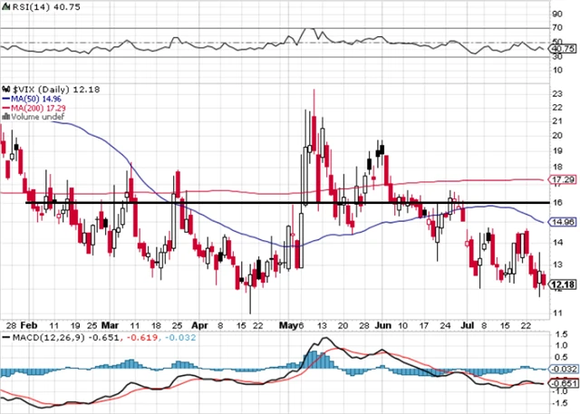 Index volatility VIX je zpět u svých minim. Možná je až příliš nízko na to, aby mohl dále klesat. Mírně vyšší kolísání v dalších dnech je proto pravděpodobné.