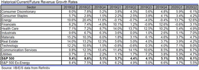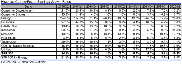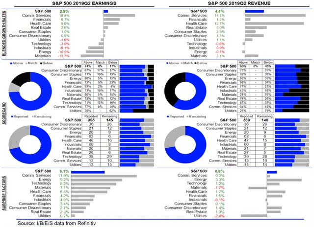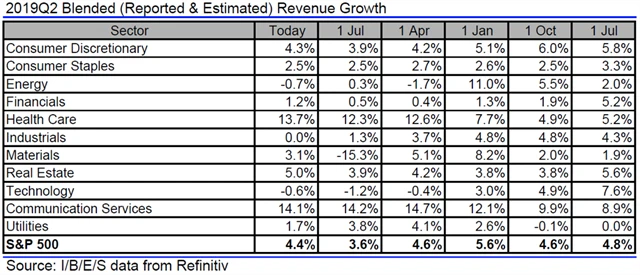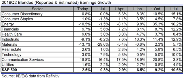 Jak se vyvíjejí odhady růstu či poklesu zisků a tržeb amerických firem za 2Q2019?