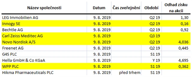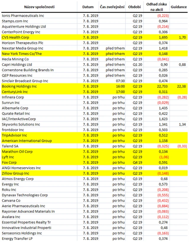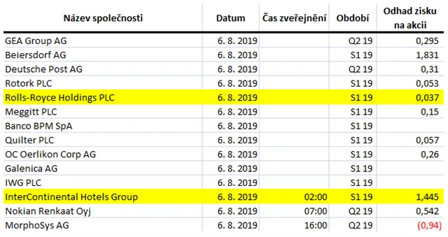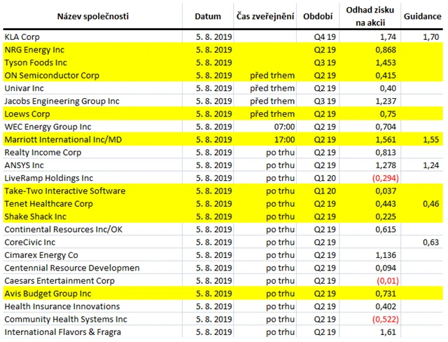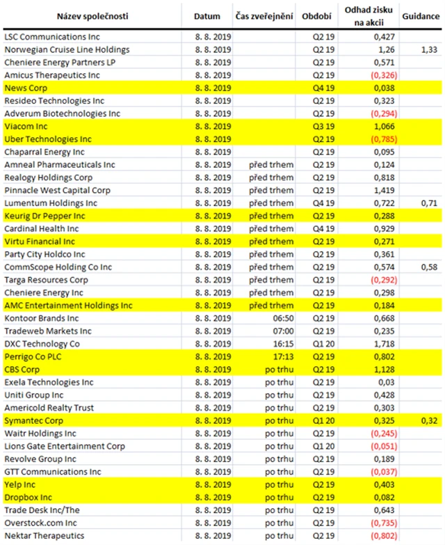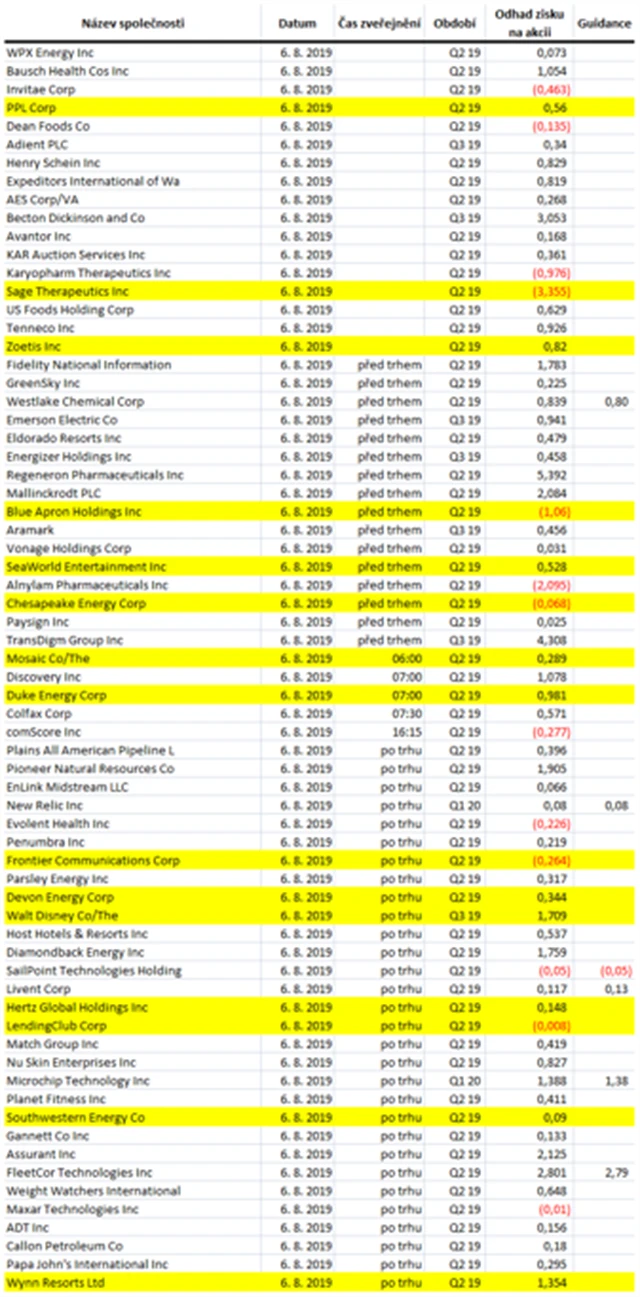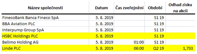 Očekávané výsledky světových firem v týdnu od 5. srpna (2. 8. 2019)