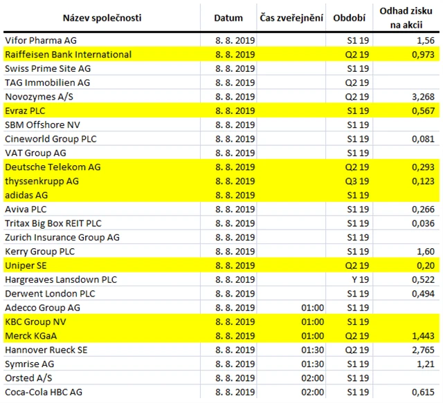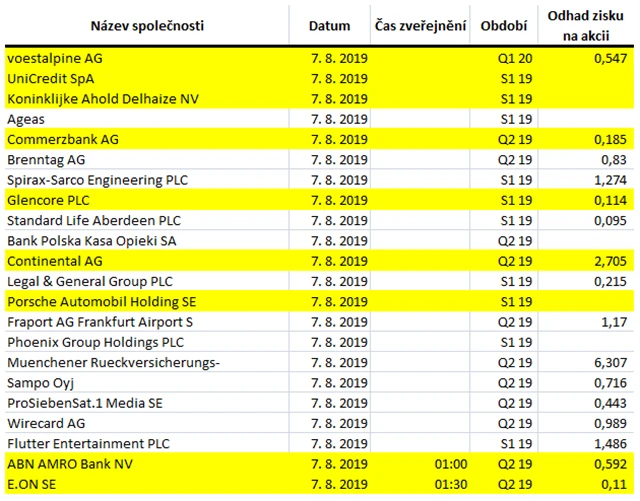 Jaká překvapení přinesly oznámené výsledky evropských firem za 2Q2019?