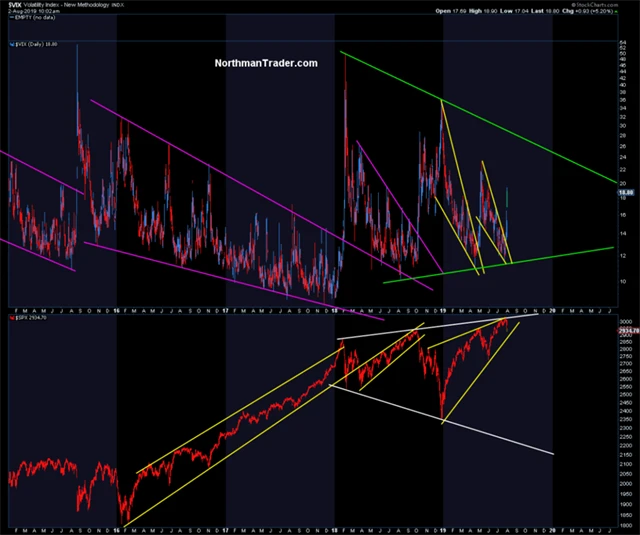A pro zajímavost ještě index volatility VIX, na jehož grafu došlo k narušení sestupného trendu (opět v podobě zmíněného klínu).