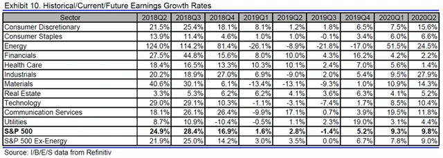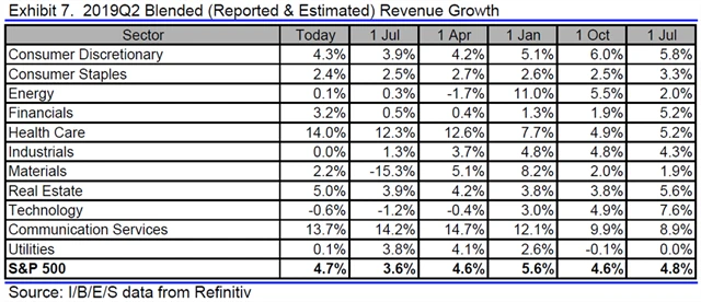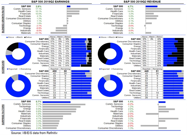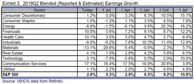 Jak se vyvíjejí odhady růstu či poklesu zisků a tržeb amerických firem za 2Q2019?