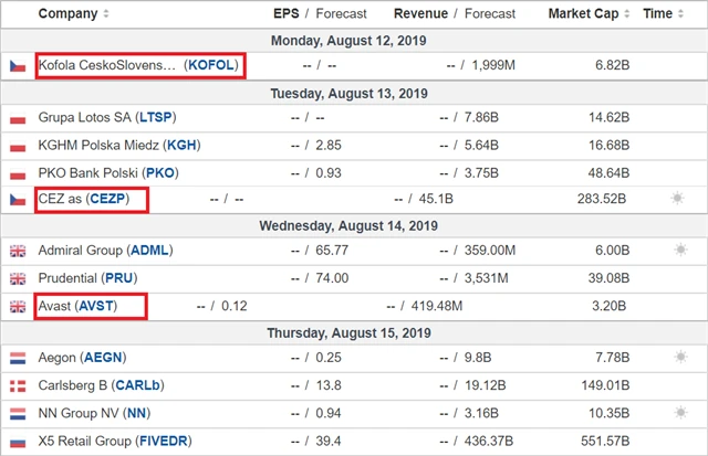 Očekávané výsledky světových firem v týdnu od 12. srpna (9. 8. 2019)
