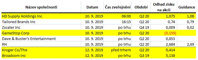 Očekávané výsledky světových firem v týdnu od 9. září (6. 9. 2019)