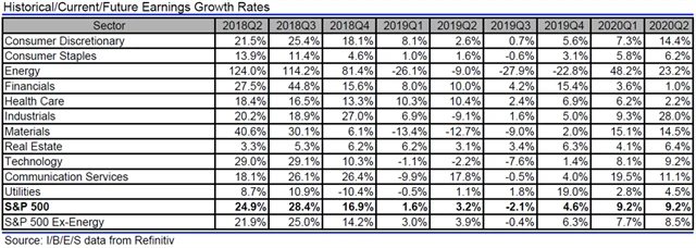 Jak se vyvíjejí odhady růstu či poklesu zisků amerických firem za 3Q2019?