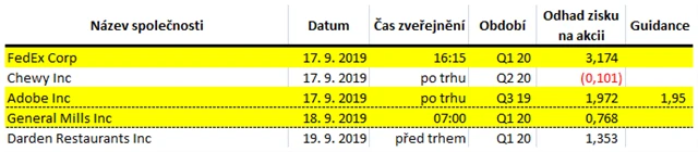 Očekávané výsledky světových firem v týdnu od 16. září (13. 9. 2019)