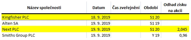 Poznámka: Odhady analytiků jsou aktuální k 12. 9. 2019.