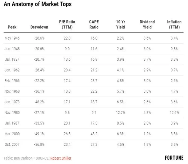 Přestože všichni víme, že jednou současný býčí trend na americkém akciovém trhu skončí, nikdo nevíme, kdy to bude. A bohužel nám nepomáhá ani historie. Ačkoli se historická data využívají ke zkoumání zákonitostí (či spíše pravidelností) trhu poměrně často, jakékoli přesnější předvídání začátku propadu není možné. Z přehledu medvědích trendů od druhé světové války je patrné, že podmínky na trzích při dosažení vrcholu cen akcií byly velice různorodé.