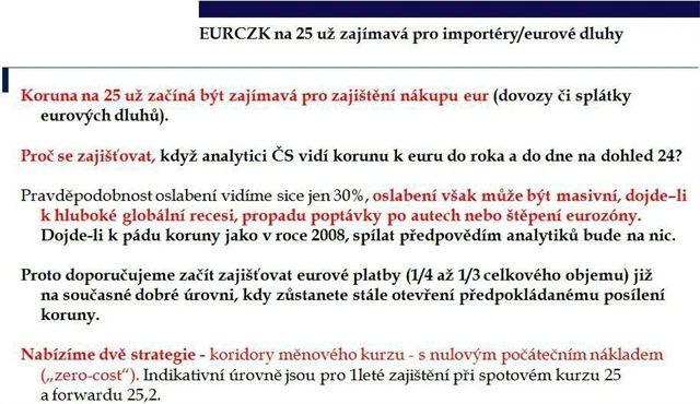 Česká koruna: Jak obchodovat okolo 25 EURCZK? Dvě zajišťovací strategie