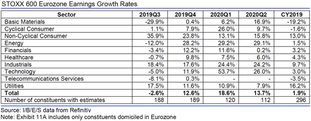Jaký vývoj zisků a tržeb evropských firem za 3Q2019 čekají analytici?