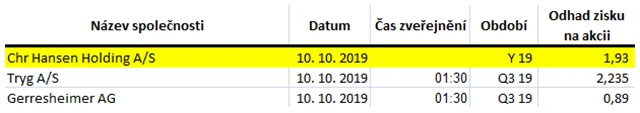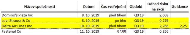 Poznámka: Odhady analytiků jsou aktuální k 4. 10. 2019.