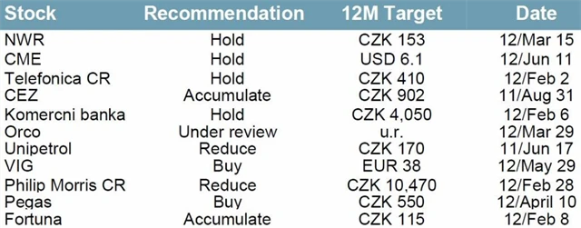 ČS: Seznam aktuálních investičních doporučení na české akcie
