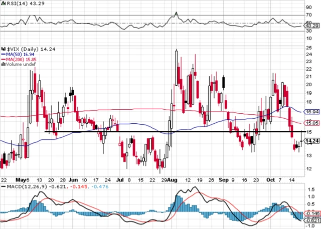 Index volatility VIX je pod 15 a jeho 200denní klouzavý průměr klesá. To znamená, že pro akcie vysílá býčí signál.