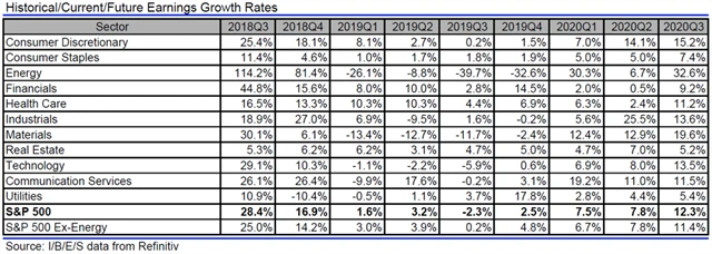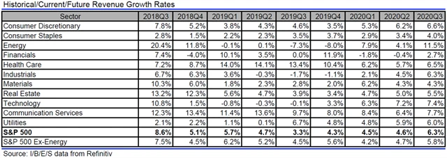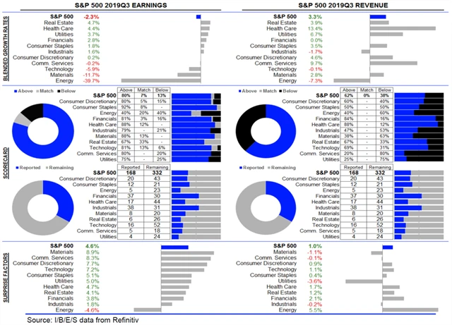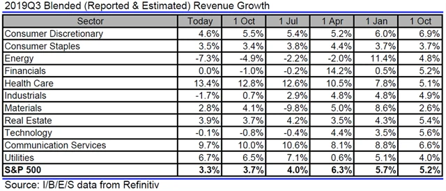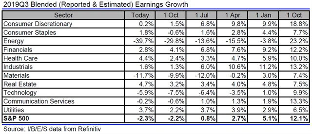Jak se vyvíjejí odhady růstu či poklesu zisků a tržeb amerických firem za 3Q2019?