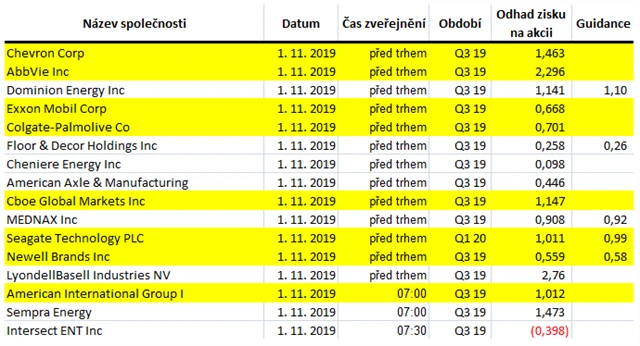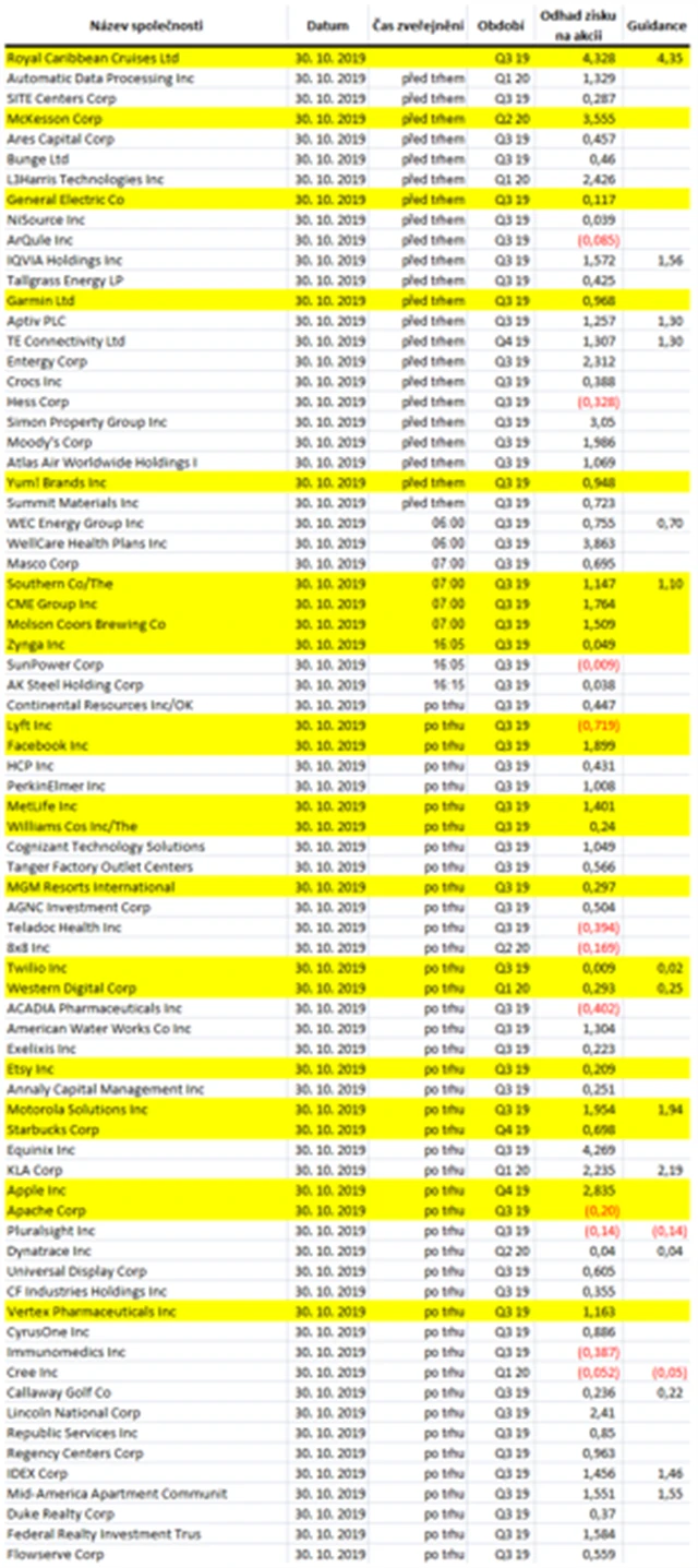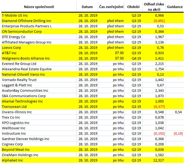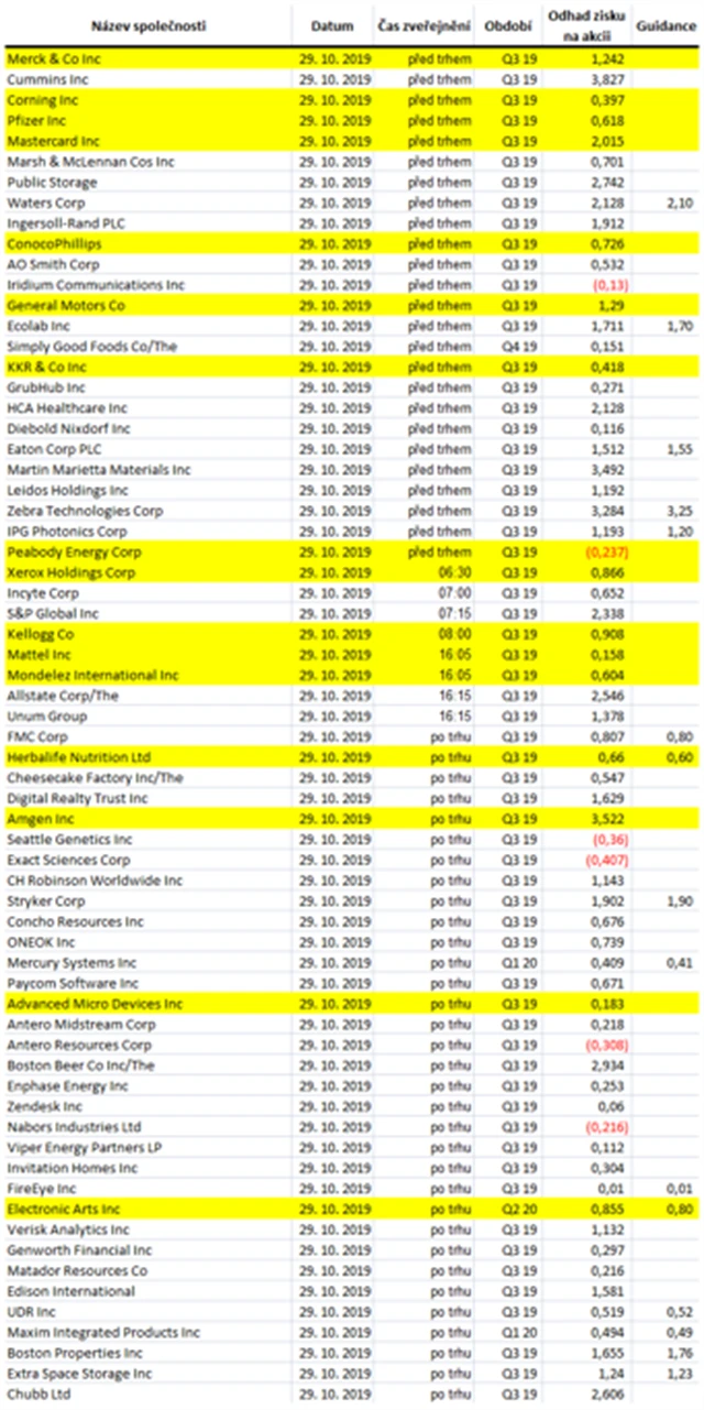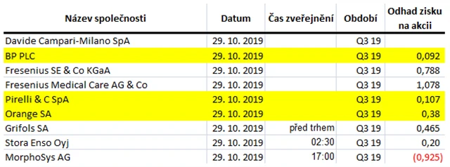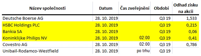 Očekávané výsledky světových firem v týdnu od 28. října (25. 10. 2019)