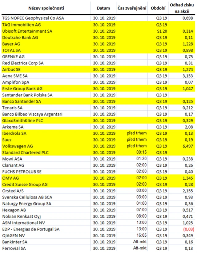 Jaká překvapení přinesly oznámené výsledky evropských firem za 3Q2019?