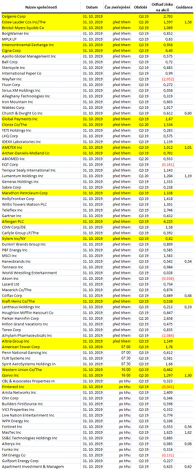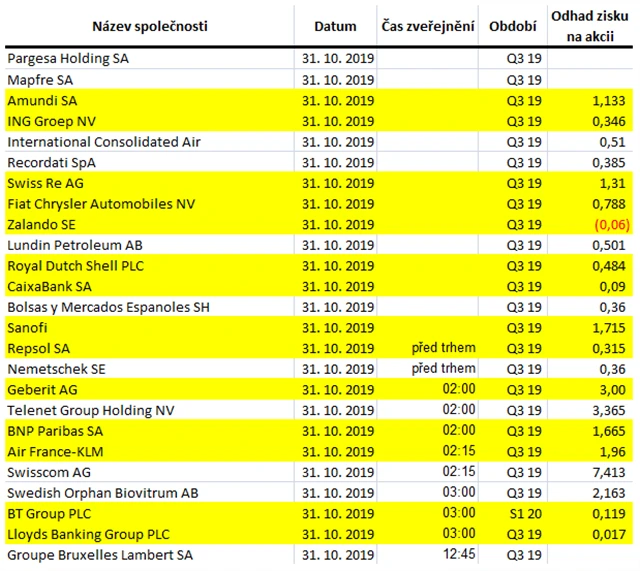 Poznámka: Odhady analytiků jsou aktuální k 24. 10. 2019.