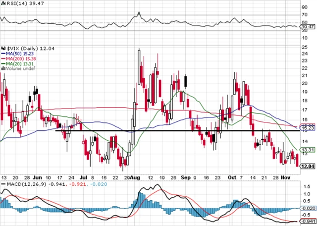 Index volatility VIX je u svých letošních minim, od kterých se odráží výše. Pro akcie vysílá býčí signál, což bude platit minimálně do doby, než by narostl na 15 bodů.