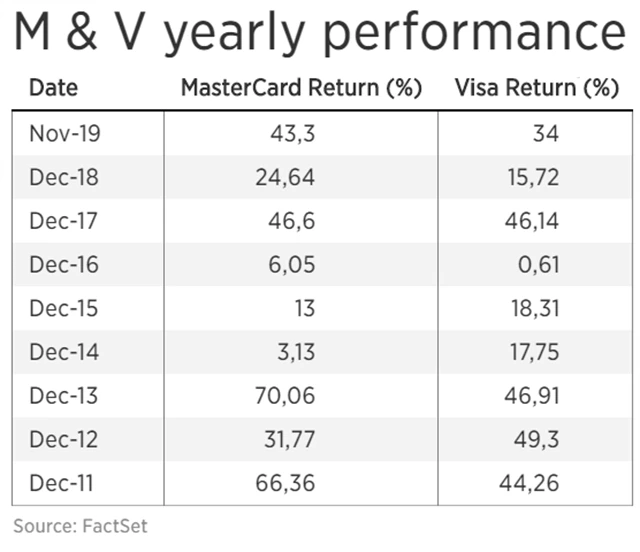 Mezi hvězdami v tomto směru jsou také provozovatelé platebních karet Visa a Mastercard. Ty stojí za zmínku i proto, že mají za sebou sérii ročních nárůstů kurzů akcií (a letos již obě akcie zpevnily o více než 30 %).