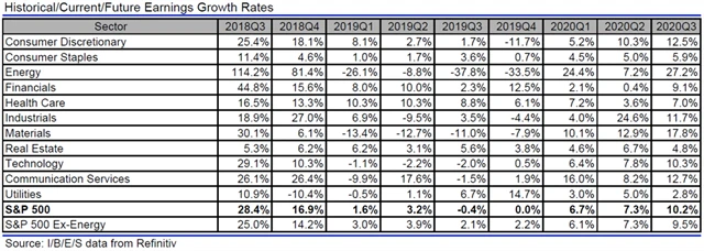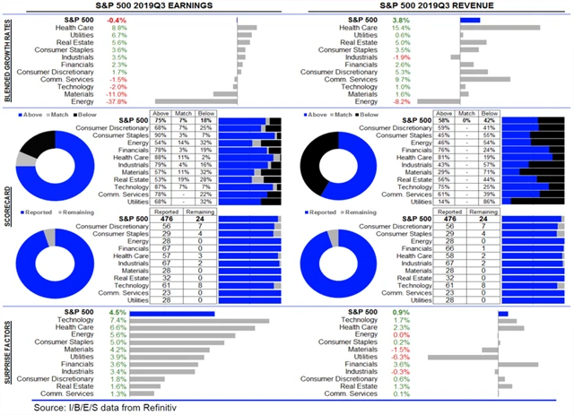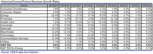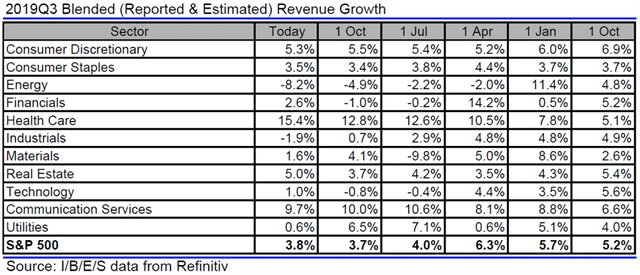 Jak se vyvíjejí odhady růstu či poklesu zisků a tržeb amerických firem za 3Q2019?
