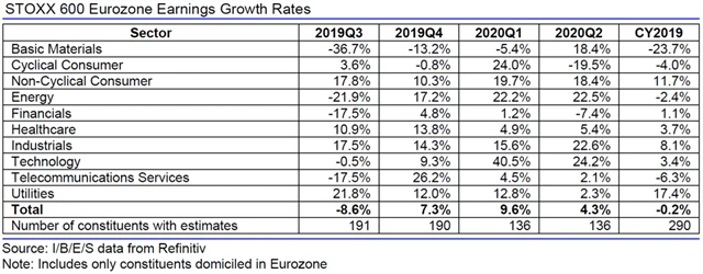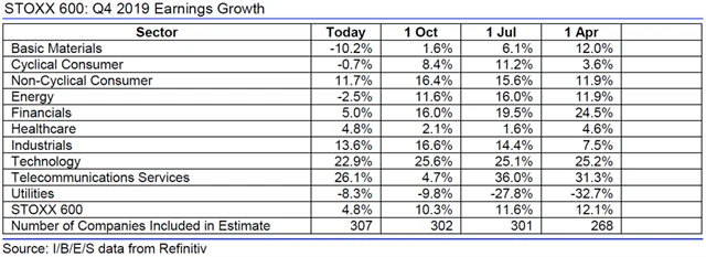 Jaký vývoj zisků a tržeb evropských firem analytici čekají za 4Q2019?