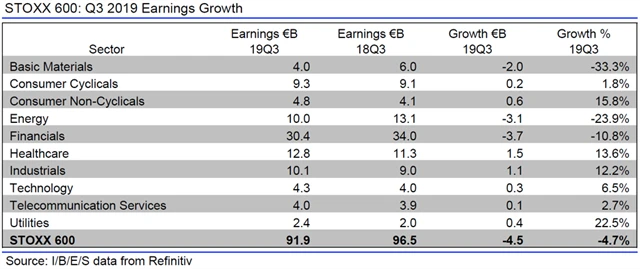 Jaký vývoj zisků a tržeb evropských firem za 3Q2019 čekají analytici?