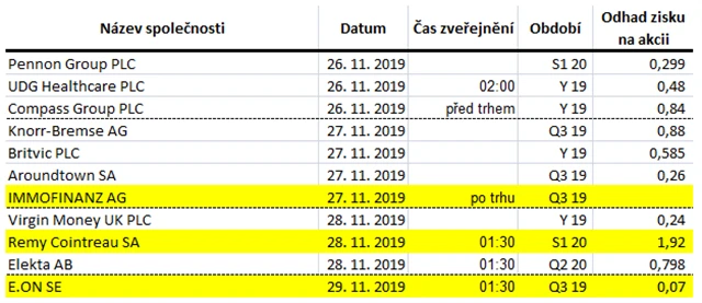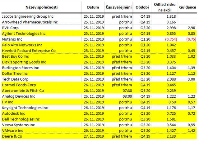 Očekávané výsledky světových firem v týdnu od 25. listopadu (22. 11. 2019)